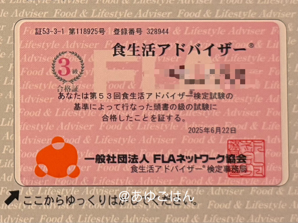 私が取得した食生活アドバイザー®は「一般社団法人FLAネットワーク協会」が主催する民間資格。食生活全般のスペシャリストとして、個人や家庭の健康的な食生活をサポートする為の知識を習得し、アドバイスや提案を行うことができるようになるための資格のこと。